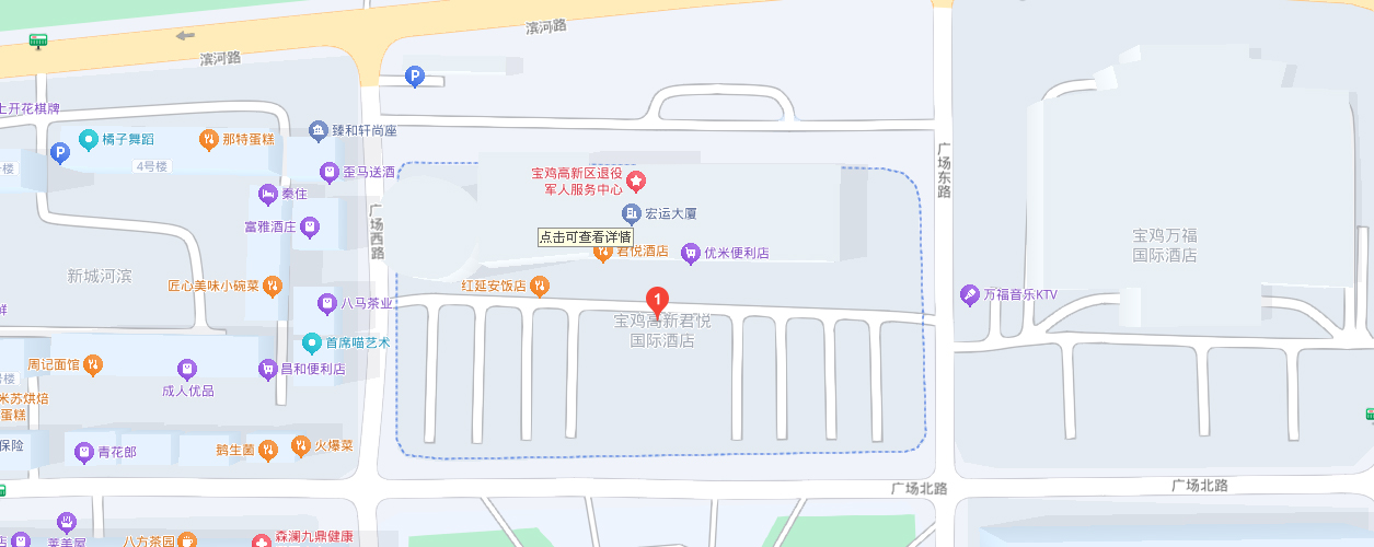 The hotel is located in Baoji High tech Development Zone, with Gaoxin Square in front of it. The venue features a music fountain, water screen movies, pavilions, and a panoramic view of the Qinling Mountains; Located north of the Weihe Ecological Park, the park offers a variety of fitness activities including blue ball fields, football fields, table tennis, badminton, and more. Whether facing the window from north to south, it provides a refreshing and relaxing view.
