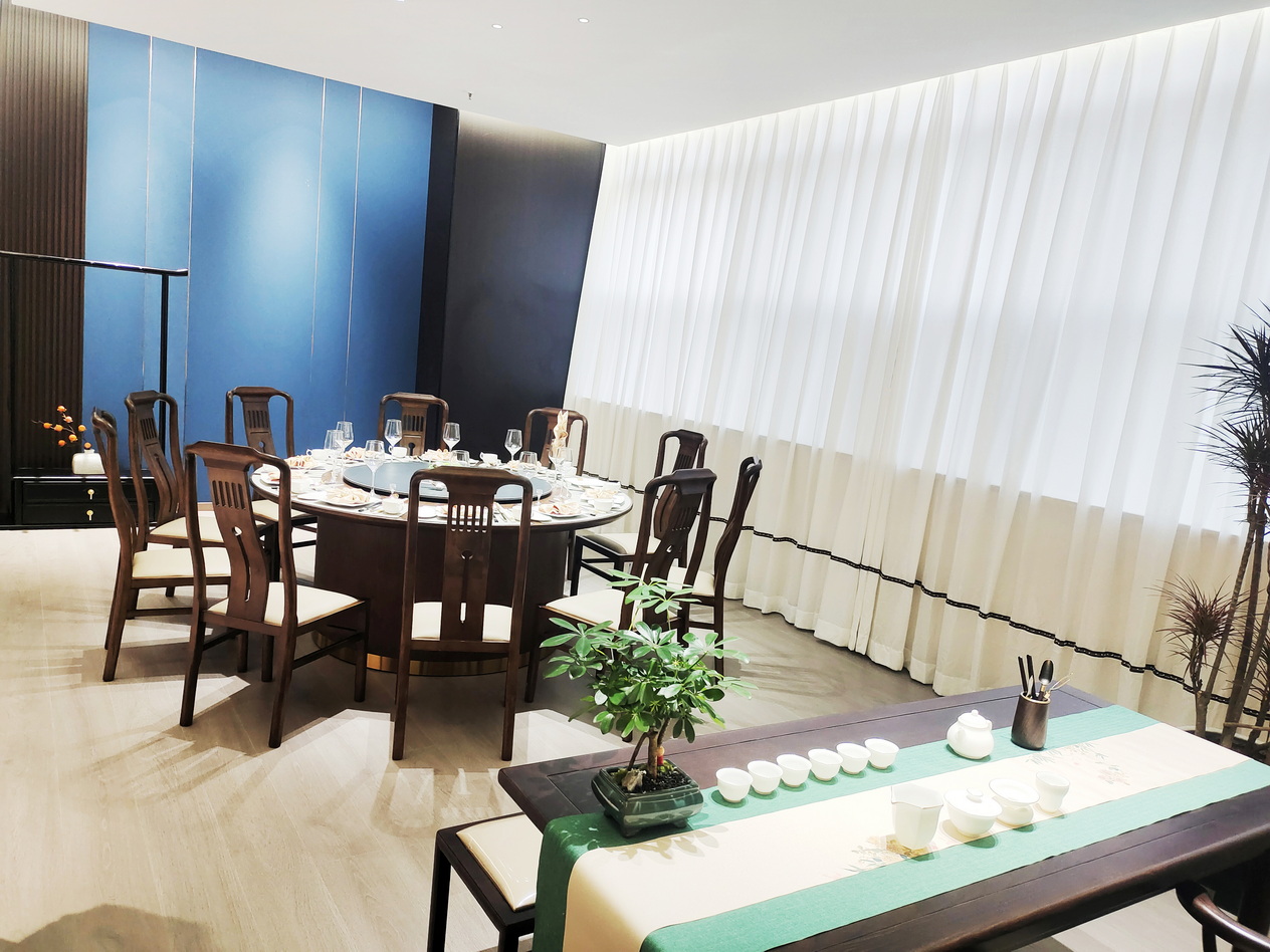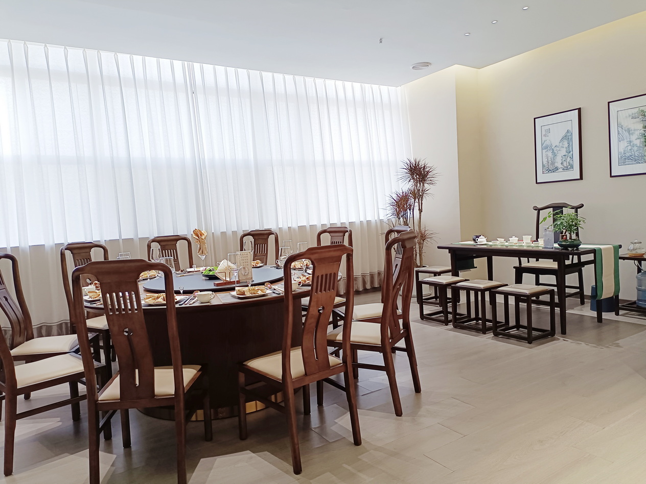 Located on the 1st to 4th floors of the hotel, with a new Chinese style decoration layout style that blends tea culture with dining table culture. Our main dishes are Cantonese cuisine and Hangzhou style cuisine, which combines local specialty snacks, delicacies, and various seasonal vegetables. We use timely ingredients and cook with our own flavors. Can meet your reception needs for business banquets and family gatherings.