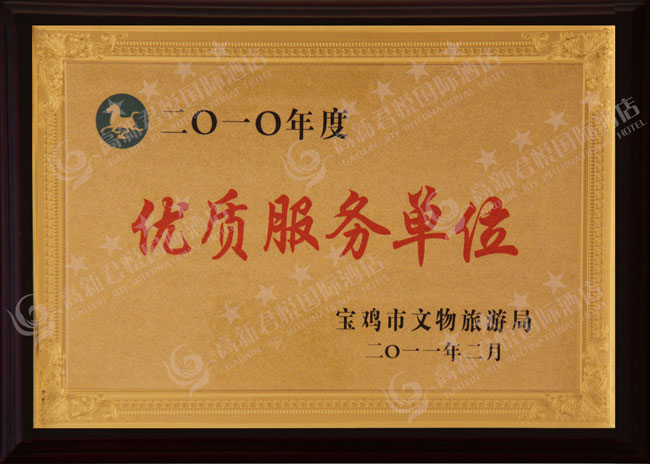 2011年2月,酒店被宝鸡市文物旅游局授予2011年度“优质服务单位”称号。